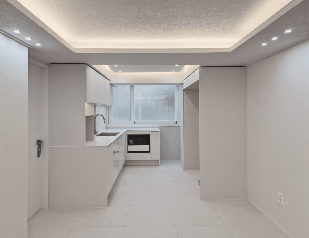 오래된 구축 아파트를 크림톤 중심으로 새롭게 재구성한 현장입니다. 불필요한 요소를 정리하고 구조와 라인을 정돈해,답답했던 공간을 밝고 간결한 분위기로 개선했습니다.