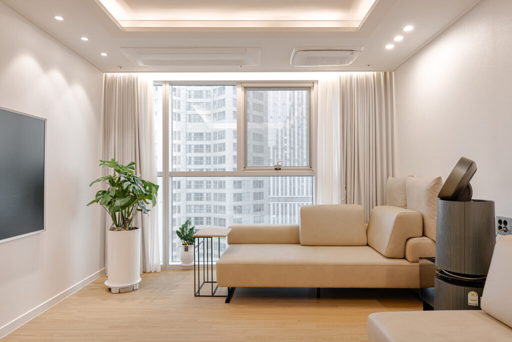 화이트나 그레이 중심의 인테리어는 시각적으로 깔끔하지만, 과도하면 차갑게 느껴질 수 있습니다.